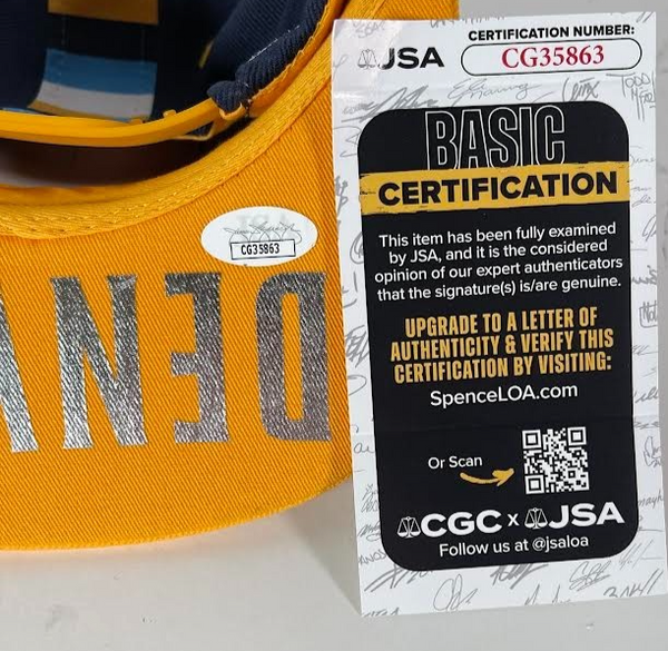 Own a Piece of Basketball History This authentic Jamal Murray signed cap is a must-have for any Denver Nuggets fan or basketball memorabilia collector. Featuring the genuine autograph of NBA champion Jamal Murray, this premium cap comes with official JSA (James Spence Authentication) Certificate of Authenticity, guaranteeing its legitimacy. Product Features: Authentic Jamal Murray signature - Hand-signed by the NBA star JSA Certificate of Authenticity - Official authentication for peace of mind Premium quality cap - Durable construction and comfortable fit Perfect for display or wear - Show your team pride anywhere Investment-grade collectible - Authentic sports memorabilia holds its value About Jamal Murray Jamal Murray is a key player for the Denver Nuggets and helped lead the team to their first NBA Championship in 2023. Known for his clutch performances and incredible shooting ability, Murray has become one of the most exciting players in the NBA. Perfect for: Nuggets fans, basketball collectors, gift giving, man caves, sports bars, and anyone who appreciates authentic NBA memorabilia.