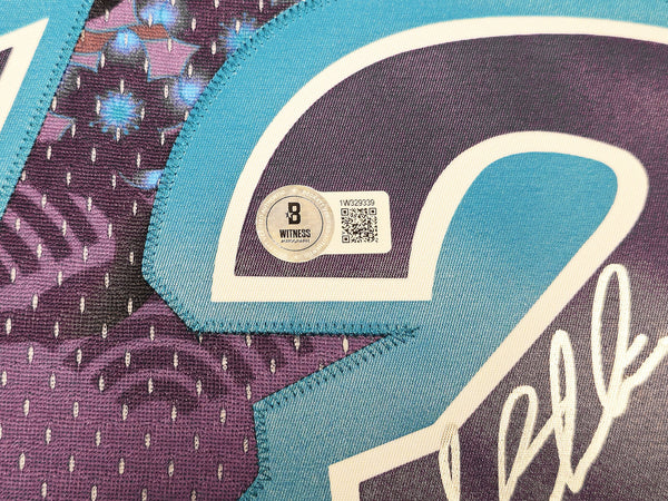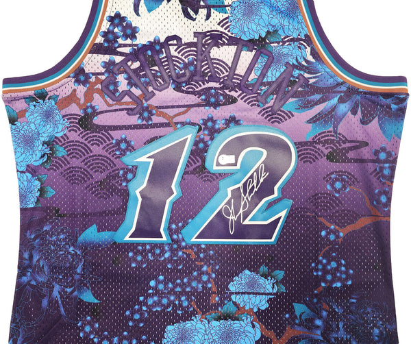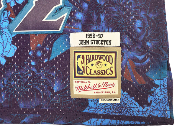 This is a Purple Authentic Mitchell & Ness Utah Jazz 1996-97 Hardwood Classic Swingman Asian Heritage 5.0 Jersey that has been hand signed by John Stockton. This jersey is Size XL. This item has been witnessed and certified authentic by Beckett Authentication (BAS) and comes with their tamper-proof witness sticker.