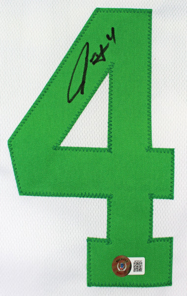 This Autographed White Pro Style Jersey has been Personally Signed by Jrue Holiday of the Boston Celtics. This item is 100% Authentic to include a hologram by Beckett Authentication Services. This item will come with an affixed Beckett Authentication Services (BAS) authentication sticker, which includes a scannable QR code to verify authenticity. Please note that Beckett no longer provides serial-numbered COA cards, and the attached BAS sticker will serve as the complete authentication for this item. This is a BAS Witnessed Protection Program item which means a Beckett Authentication Service representative was present when this item was being signed. We conducted an autograph signing with Jrue Holiday where multiples of the same item were signed. While the photographs are representative of this item, the size, placement and strength of the signature may vary. Each item is hand signed, therefore, each autograph is unique. This item can be verified through BAS Witnessed. This is a X-Large sized, non-branded, custom-stitched Jersey.