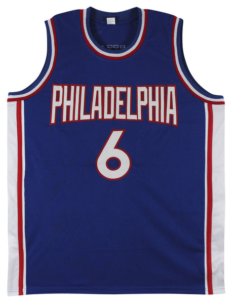 This Autographed Blue Pro Style Jersey has been Personally Signed by Julius "Dr. J" Erving of the Philadelphia 76ers. This item is 100% Authentic to include a hologram by Beckett Authentication Services. This item may come with the new Beckett Authentication hologram that has a scannable QR code rather than the traditional COA. If you would like to have a COA, you are welcome to reach out to Beckett for a printed certification once you receive your item. This is a BAS Witnessed Protection Program item which means a Beckett Authentication Service representative was present when this item was being signed. We conducted an autograph signing with Julius "Dr. J" Erving where multiples of the same item were signed. While the photographs are representative of this item, the size, placement and strength of the signature may vary. Each item is hand signed, therefore, each autograph is unique. This item can be verified through BAS Witnessed. This is a X-Large sized, non-branded, custom-stitched Jersey.