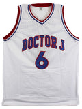 This Autographed White Pro Style Jersey has been Personally Signed by Julius "Dr. J" Erving of the Philadelphia 76ers. This item is 100% Authentic to include a hologram by Beckett Authentication Services. This item will come with an affixed Beckett Authentication Services (BAS) authentication sticker, which includes a scannable QR code to verify authenticity. Please note that Beckett no longer provides serial-numbered COA cards, and the attached BAS sticker will serve as the complete authentication for this item. We conducted an autograph signing with Julius "Dr. J" Erving where multiples of the same item were signed. While the photographs are representative of this item, the size, placement and strength of the signature may vary. Each item is hand signed, therefore, each autograph is unique. This item can be verified through BAS. This is a X-Large sized, non-branded, custom-stitched Jersey.