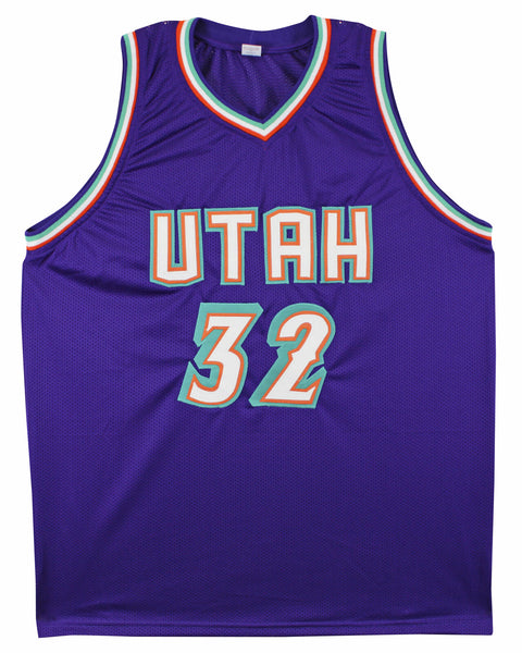 This Autographed Purple Pro Style Jersey has been Personally Signed by Karl Malone of the Utah Jazz. This item is 100% Authentic to include a hologram by Beckett Authentication Services. This item will come with an affixed Beckett Authentication Services (BAS) authentication sticker, which includes a scannable QR code to verify authenticity. Please note that Beckett no longer provides serial-numbered COA cards, and the attached BAS sticker will serve as the complete authentication for this item. This is a BAS Witnessed Protection Program item which means a Beckett Authentication Service representative was present when this item was being signed. We conducted an autograph signing with Karl Malone where multiples of the same item were signed. While the photographs are representative of this item, the size, placement and strength of the signature may vary. Each item is hand signed, therefore, each autograph is unique. This item can be verified through BAS Witnessed. This is a X-Large sized, non-branded, custom-stitched Jersey.