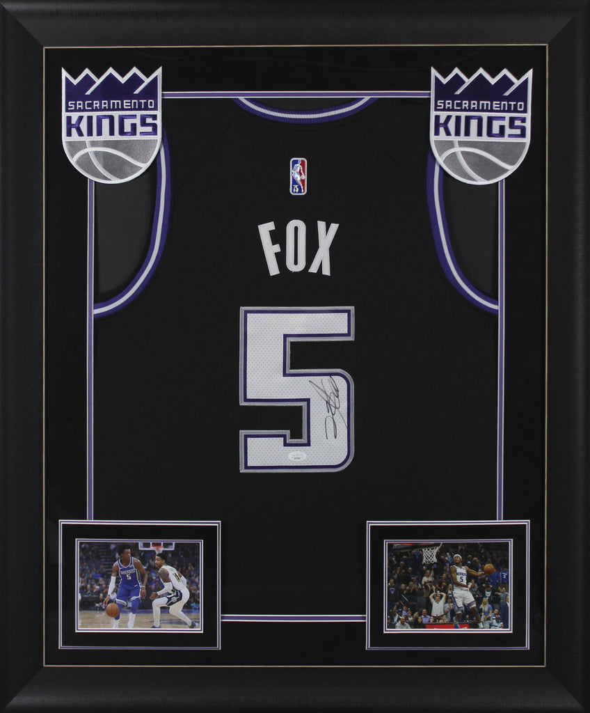 This Autographed Black Nike Framed Jersey has been Personally Signed by De'Aaron Fox of the Sacramento Kings. This item is 100% Authentic to include a Certificate of Authenticity (COA) / hologram by JSA. The authenticity can be verified on JSA website. This item has been professionally framed to overall dimensions of approximately 32 x 37 inches.