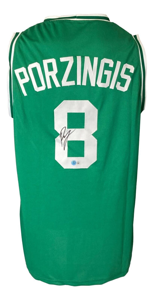 Featured is a Kristaps Porzingis signed custom basketball jersey. This jersey has been hand signed by Porzingis and comes with the Beckett hologram and certificate of authenticity. This jersey features professionally sewn letters and numbers and is size XL. This jersey has no team tags or emblems and is intended as a sports collectible. This jersey would make a great addition to any sports memorabilia collection!. SPECIFICATIONS Autographed By: Kristaps Porzingis Team: Boston Celtics Sport: Basketball Authentication: Beckett Grading Services