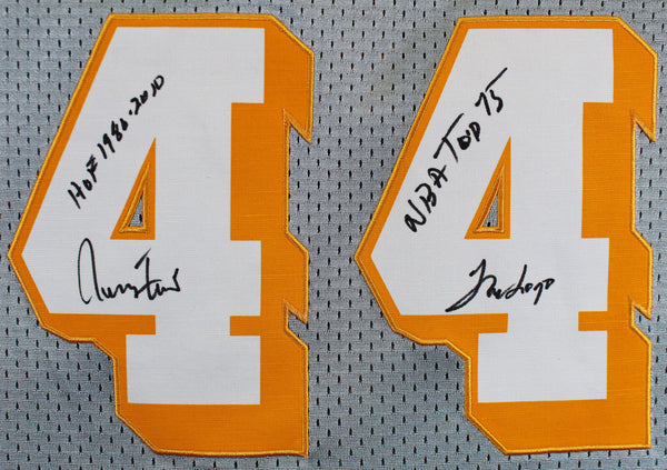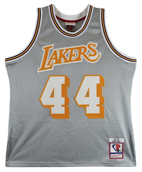 This Autographed Grey 75th Anniversary Mitchell & Ness Hardwood Classics Swingman Jersey with the inscription of "HOF 1980-2010, NBA Top 75, The Logo" has been Personally Signed by Jerry West of the Los Angeles Lakers. This item is 100% Authentic to include a hologram by Beckett Authentication Services. This item may come with the new Beckett Authentication hologram that has a scannable QR code rather than the traditional COA. If you would like to have a COA, you are welcome to reach out to Beckett for a printed certification once you receive your item. This is a BAS Witnessed Protection Program item which means a Beckett Authentication Service representative was present when this item was being signed. We conducted an autograph signing with Jerry West where multiples of the same item were signed. While the photographs are representative of this item, the size, placement and strength of the signature may vary. Each item is hand signed, therefore, each autograph is unique. This item can be verified through BAS Witnessed. This is a X-Large sized Jersey.