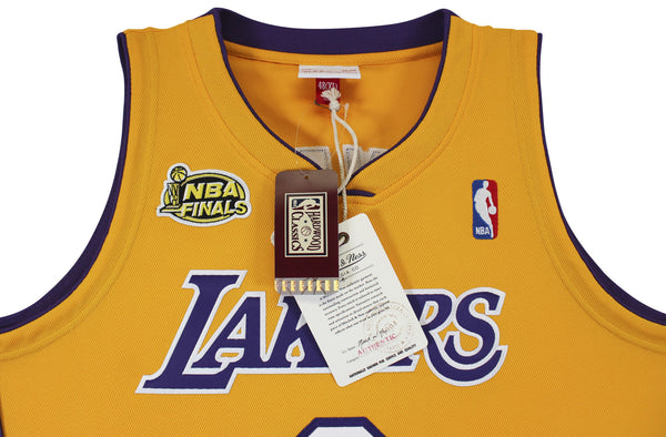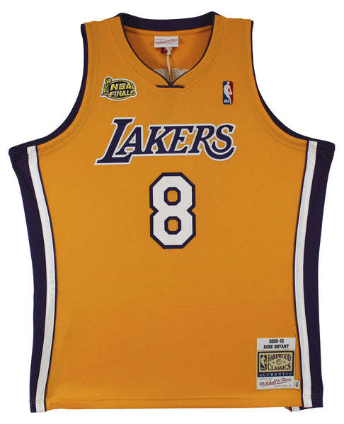 This Autographed Yellow 2000-01 Mitchell & Ness Hardwood Classics Authentic Jersey has been Personally Signed by Kobe Bryant of the Los Angeles Lakers. This item is 100% Authentic and comes with a PSA/DNA Certification Card and a matching numbered Hologram. The authenticity can be verified on Professional Sports Authenticator website. This is a X-Large sized Jersey.