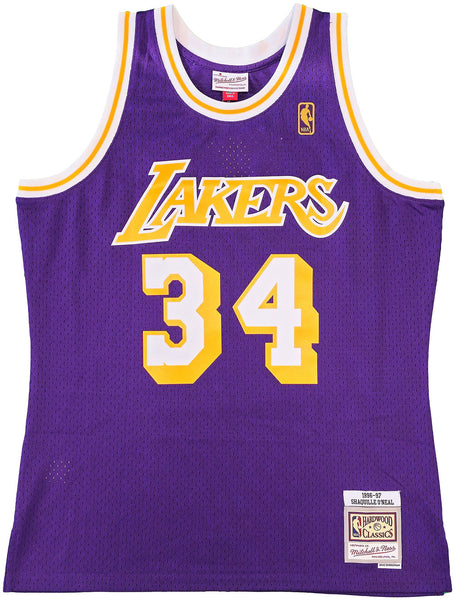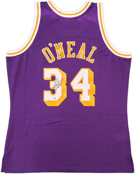 This is a Purple Authentic Mitchell & Ness Los Angeles Lakers 1996-97 HWC Swingman Jersey that has been hand signed by Shaquille Shaq O'Neal. This jersey is Size L. This item has been witnessed and certified authentic by Beckett Authentication (BAS) and comes with their tamper-proof witness hologram.