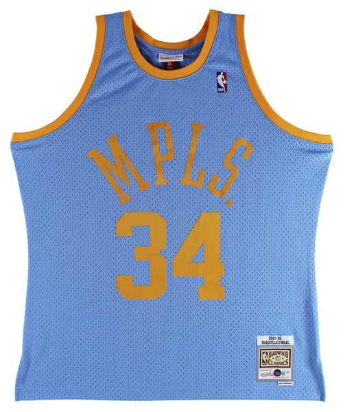 This Autographed Blue Throwback Mitchell & Ness Hardwood Classics Swingman Jersey has been Personally Signed by Shaquille O'Neal of the Los Angeles Lakers. This item is 100% Authentic to include a hologram by Beckett Authentication Services. This item may come with the new Beckett Authentication hologram that has a scannable QR code rather than the traditional COA. If you would like to have a COA, you are welcome to reach out to Beckett for a printed certification once you receive your item. This is a BAS Witnessed Protection Program item which means a Beckett Authentication Service representative was present when this item was being signed. We conducted an autograph signing with Shaquille O'Neal where multiples of the same item were signed. While the photographs are representative of this item, the size, placement and strength of the signature may vary. Each item is hand signed, therefore, each autograph is unique. This item can be verified through BAS Witnessed. This is a X-Large sized, non-branded, custom-stitched Jersey.