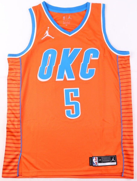 Jordan NBA Replica jersey with everything pressed on, size 48. Hand-signed by Luguentz Dort.The autograph(s) includes an official PSA/DNA hologram and QR Code card for authenticity purposes.Authentication: PSA Hologram with QR Code card