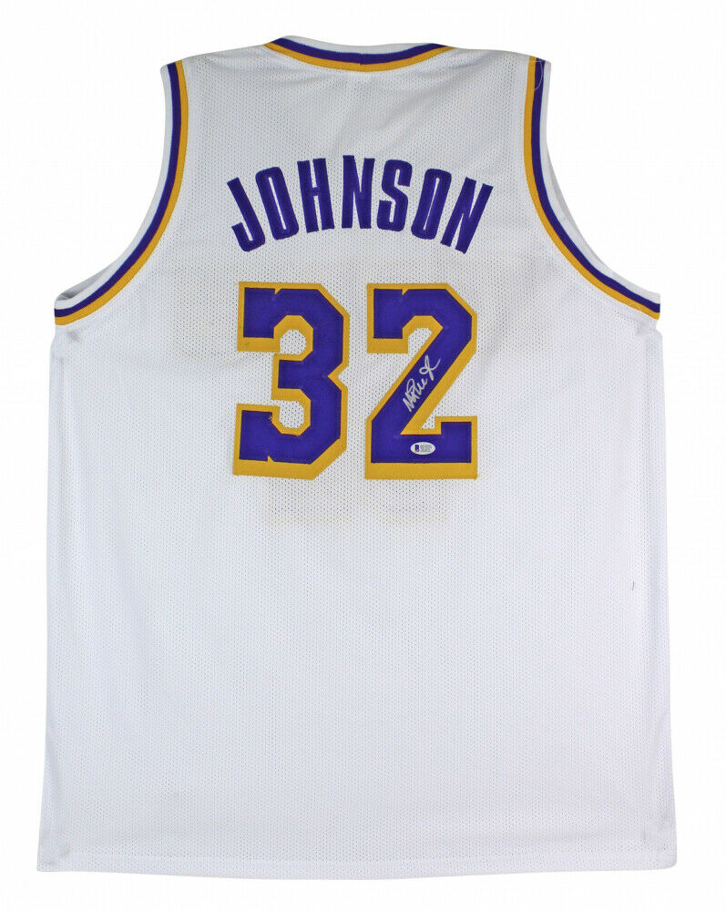 Custom on-court style jersey. Everything is sewn on, size XL. Hand-signed in silver paint pen by Magic Johnson (HOF). Magic Johnson is widely considered one of the greatest basketball players of all time. Johnson's career achievements include three NBA MVP Awards, five NBA Championships, three NBA finals MVP awards, twelve All-Star games, nine-time All-NBA first team nods. The lot / autograph(s) includes an official Beckett Authentication Services serially-numbered hologram for authenticity purposes. The signing of this item was witnessed by Beckett.Authentication: Beckett Hologram