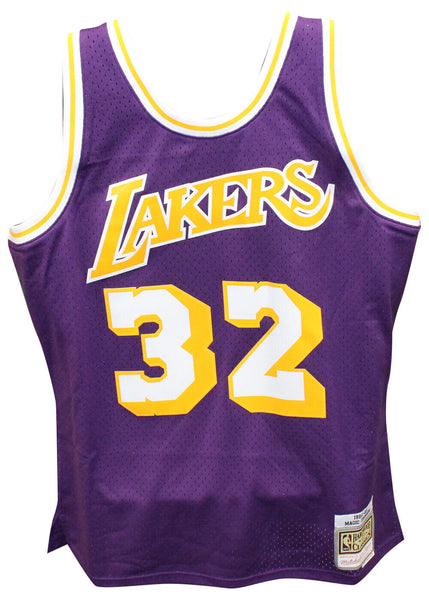 Magic Johnson Signed Swingman Los Angeles Lakers M&N Jersey Beckett 40848 The number in the listing title is just an inventory sku for our records and is not the authentication number. The item pictured is a stock photo unless otherwise noted. This is a Los Angeles Lakers Swingman Mitchell and Ness 1984-1985 Authentic Purple Size Large Jersey that was personally signed by Magic Johnson. Includes a certificate of authenticity from Beckett Authentication Services (BAS) and Denver Autographs.