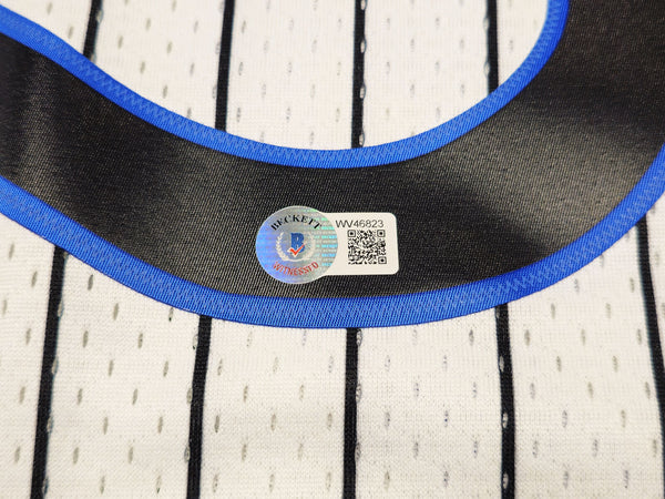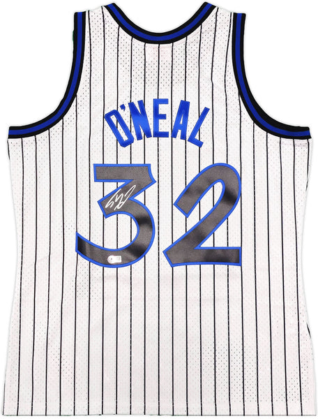 This is a White Authentic Mitchell & Ness Orlando Magic 1993-94 HWC Swingman Jersey that has been hand signed by Shaquille Shaq O'Neal. This jersey is Size L. This item has been witnessed and certified authentic by Beckett Authentication (BAS) and comes with their tamper-proof witness hologram.