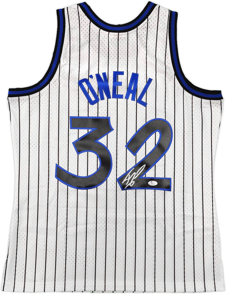 This is a White Authentic Mitchell & Ness Orlando Magic 1993-94 HWC Swingman Jersey that has been hand signed by Shaquille Shaq O'Neal. This jersey is Size L. This item has been certified authentic by PSA/DNA and comes with their tamper-proof hologram and matching certificate of authenticity.