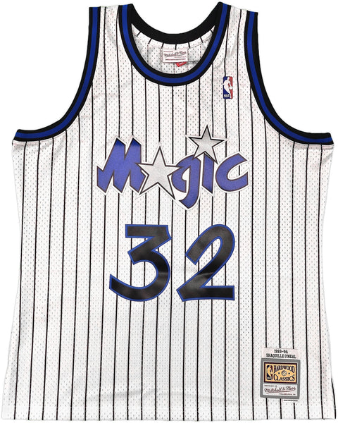 This is a White Authentic Mitchell & Ness Orlando Magic 1993-94 HWC Swingman Jersey that has been hand signed by Shaquille Shaq O'Neal. This jersey is Size XL. This item has been witnessed and certified authentic by Beckett Authentication (BAS) and comes with their tamper-proof witness hologram.