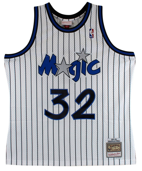 This Autographed White Mitchell & Ness 1993-94 Throwback Hardwood Classics Swingman Jersey has been Personally Signed by Shaquille O'Neal of the Orlando Magic. This item is 100% Authentic to include a hologram by Beckett Authentication Services. This item will come with the new Beckett Authentication hologram that has a scannable QR code rather than the traditional COA. If you would like to have a COA, you are welcome to reach out to Beckett for a printed certification once you receive your item. This is a BAS Witnessed Protection Program item which means a Beckett Authentication Service representative was present when this item was being signed. This is a stock item. We conducted an autograph signing with Shaquille O'Neal and we have several of these available. The one you will receive will be of equal quality to the one pictured. This item can be verified through BAS Witnessed. This is a X-Large sized Jersey.