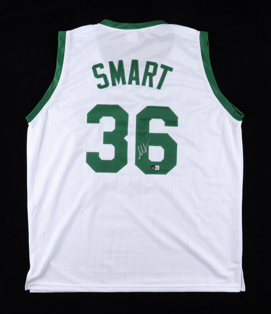 Custom on-field style jersey. Everything is sewn on, size XL. Hand-signed by Marcus Smart.The lot / autograph(s) includes an official Beckett Authentication Services serially-numbered hologram and matching COA for authenticity purposes.Authentication: Beckett COA