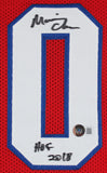 This Autographed Red Pro Style Jersey with the inscription of "HOF 2018" has been Personally Signed by Maurice Cheeks of the Philadelphia 76ers. This item is 100% Authentic to include a hologram by Beckett Authentication Services. This item will come with an affixed Beckett Authentication Services (BAS) authentication sticker, which includes a scannable QR code to verify authenticity. Please note that Beckett no longer provides serial-numbered COA cards, and the attached BAS sticker will serve as the complete authentication for this item. This is a BAS Witnessed Protection Program item which means a Beckett Authentication Service representative was present when this item was being signed. We conducted an autograph signing with Maurice Cheeks where multiples of the same item were signed. While the photographs are representative of this item, the size, placement and strength of the signature may vary. Each item is hand signed, therefore, each autograph is unique. This item can be verified through BAS Witnessed. This is a X-Large sized, non-branded, custom-stitched Jersey.