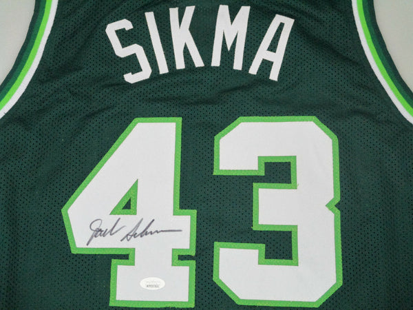 A hand signed custom replica jersey of former Milwaukee Bucks legend JACK SIKMA. The signature is in Black Sharpie. This item was signed at a public signing with us. This would make a great addition to any Bucks collection! This item is guaranteed to be 100% authentic and will include a COA from JSA authentication with matching serial numbers.