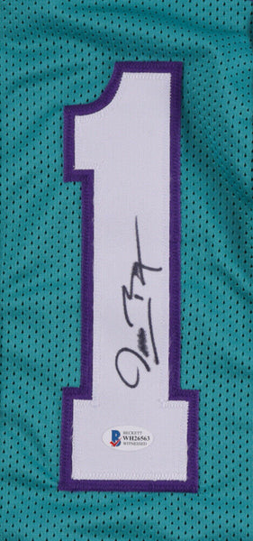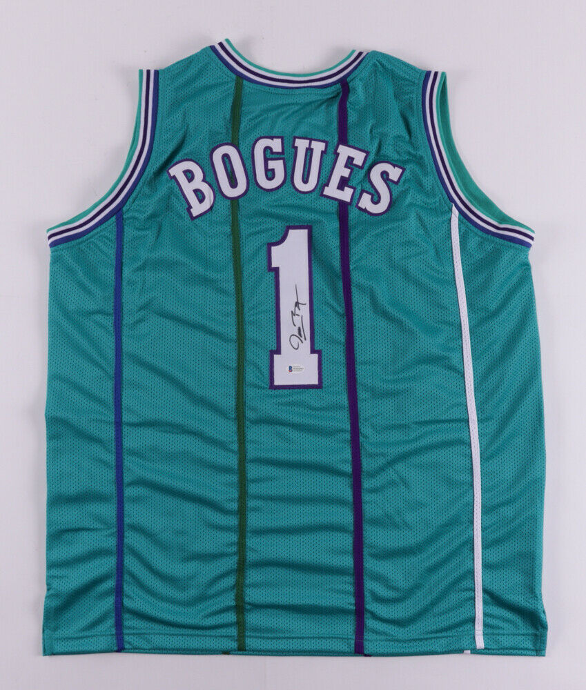 Custom on-court style jersey. Everything sewn on, size XL. Hand-signed by Muggsy Bogues (Charlotte Hornets).The lot / autograph(s) includes an official Beckett Authentication Services serially-numbered hologram for authenticity purposes. The signing of this item was witnessed by Beckett.Authentication: Beckett Hologram