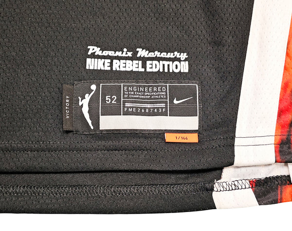 This is a Black Nike Phoenix Mercury Rebel Edition Jersey that has been hand signed by Diana Taurasi. This jersey is Size XL. This item has been certified authentic by Beckett Authentication (BAS) and comes with their tamper-proof QR Code sticker that can be verified on beckett-authentication.com.