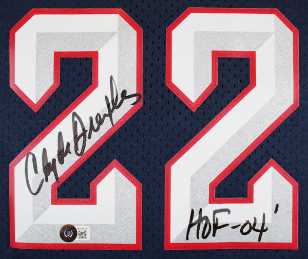 This Autographed Navy Blue Mitchell & Ness Jersey with the inscription of "HOF 04" has been Personally Signed by Clyde Drexler of the Houston Rockets. This item is 100% Authentic to include a hologram by Beckett Authentication Services. This item may come with the new Beckett Authentication hologram that has a scannable QR code rather than the traditional COA. If you would like to have a COA, you are welcome to reach out to Beckett for a printed certification once you receive your item. This is a BAS Witnessed Protection Program item which means a Beckett Authentication Service representative was present when this item was being signed. We conducted an autograph signing with Clyde Drexler where multiples of the same item were signed. While the photographs are representative of this item, the size, placement and strength of the signature may vary. Each item is hand signed, therefore, each autograph is unique. This item can be verified through BAS Witnessed. This is a X-Large sized, non-branded, custom-stitched Jersey.