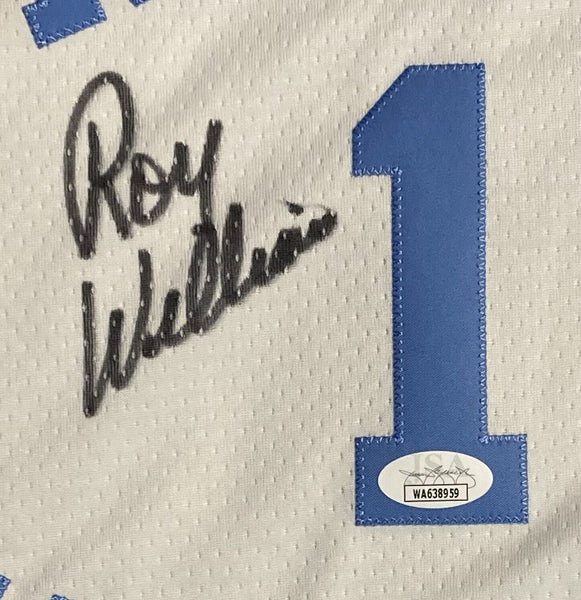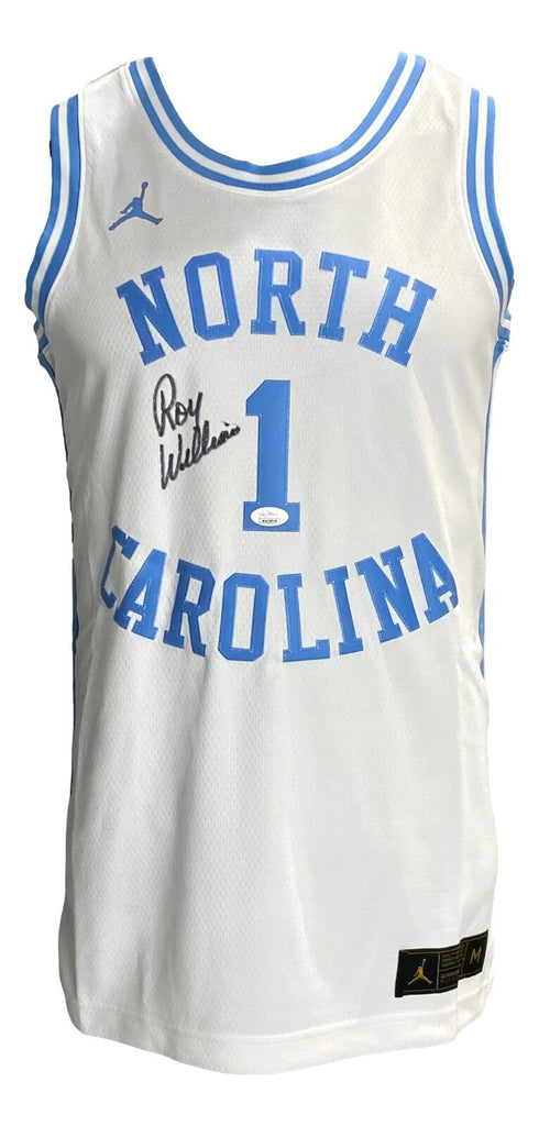 Featured is a Roy Williams signed white UNC Jordan Brand limited basketball jersey. This jersey was hand signed by Williams and comes with the JSA Witness hologram and certificate of authenticity.This jersey is size Medium. This jersey would make a great addition to any sports memorabilia collection! SPECIFICATIONS Autographed By: Roy Williams Team: UNC Tarheels Sport: Basketball Authentication: James Spence Authentication (JSA)