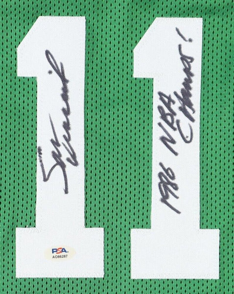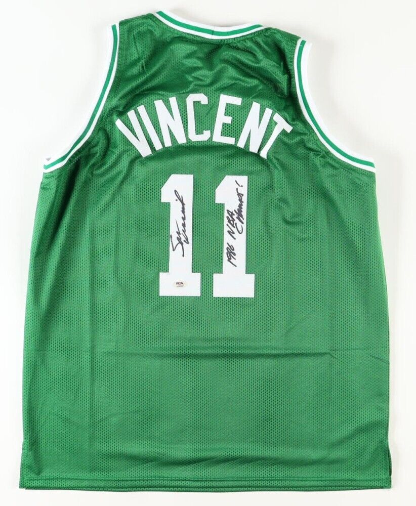 Custom on-court style jersey. Everything is sewn on, size XL. Jersey is hand-signed and inscribed by Sam Vincent.The autograph(s) includes an official PSA/DNA hologram and QR Code card for authenticity purposes.Authentication: PSA Hologram with QR Code card