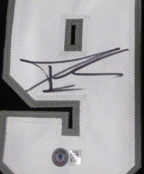 This is a Black Jersey that has been hand signed by Tony Parker. This is a custom jersey with no name brand. The approximate size is XL. It has nice sewn in name and numbers. This item has been certified authentic by Beckett Authentication (BAS) and comes with their tamper-proof QR Code sticker that can be verified on the Beckett-authentication.com.