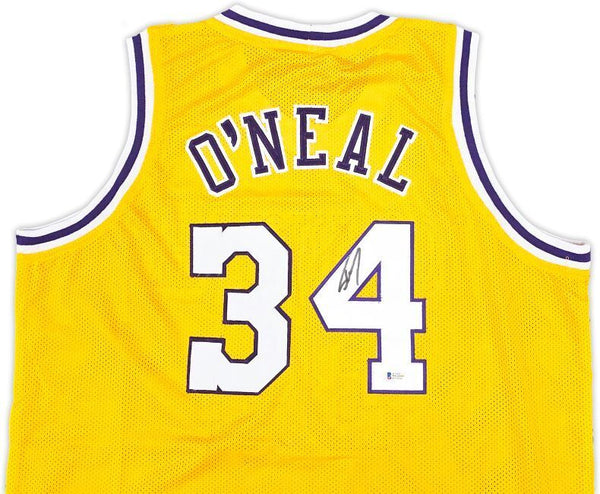 Featured is a Shaquille O'Neal signed custom basketball jersey. This jersey has been hand signed by O'Neal and comes with the Beckett hologram and certificate of authenticity. This jersey has professionally sewn letters and numbers and is size XL. This jersey has no team tags or emblems and is intended as a sports collectible. This jersey would make a great addition to any sports collection!. SPECIFICATIONS Autographed By: Shaquille O'Neal Team: Los Angeles Lakers Sport: Basketball Authentication: Beckett Grading Services