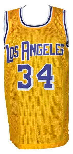 Featured is a Shaquille O'Neal signed custom yellow pro-style basketball jersey. This jersey was hand signed by Shaquille O'Neal in the presence of a Beckett authentication representative. Included with the jersey is a Beckett witnessed hologram and certificate of authentication. This jersey has sewn letters and numbers and has NO logos or any affiliation with any manufacturer, team, or league. It is simply intended to be used as an autographed collectible. This jersey is a size X-Large.. SPECIFICATIONS Autographed By: Shaquille O'Neal Team: Los Angeles Lakers Sport: Basketball Authentication: Beckett Grading Services