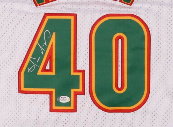 This autographed jersey has been personally hand-signed by Shawn Kemp of the Seattle Supersonics. This autograph is certified by PSA/DNA (Professional Sports Authenticators). It comes with the numbered hologram and matching Certificate of Authenticity.Custom on-field style jerseys are a more affordable option for autograph seekers. These jerseys do not have any brand name or tags and are made in the Philippines. They feature stitched on names and numbers and are made to look very similar to the on-field jerseys that the players wear. These custom jerseys are very commonly used in the memorabilia industry.