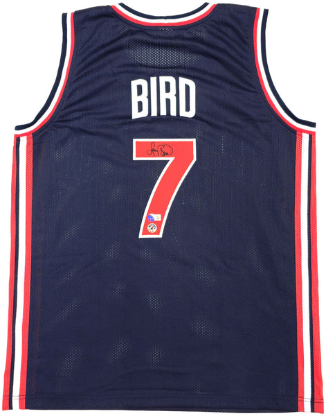 TEAM USA LARRY BIRD AUTOGRAPHED BLUE BASKETBALL JERSEY BECKETT BAS QR 228094