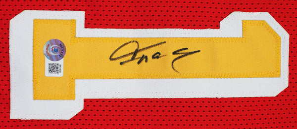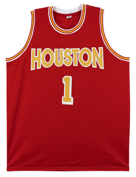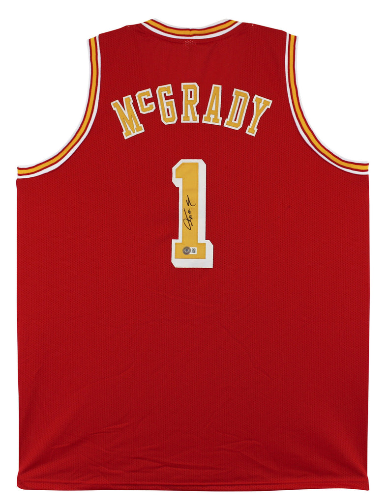 This Autographed Red Pro Style Jersey has been Personally Signed by Tracy McGrady of the Houston Rockets. This item is 100% Authentic to include a hologram by Beckett Authentication Services. This item will come with an affixed Beckett Authentication Services (BAS) authentication sticker, which includes a scannable QR code to verify authenticity. Please note that Beckett no longer provides serial-numbered COA cards, and the attached BAS sticker will serve as the complete authentication for this item. This is a BAS Witnessed Protection Program item which means a Beckett Authentication Service representative was present when this item was being signed. We conducted an autograph signing with Tracy McGrady where multiples of the same item were signed. While the photographs are representative of this item, the size, placement and strength of the signature may vary. Each item is hand signed, therefore, each autograph is unique. This item can be verified through BAS Witnessed. This is a X-Large sized, non-branded, custom-stitched Jersey.