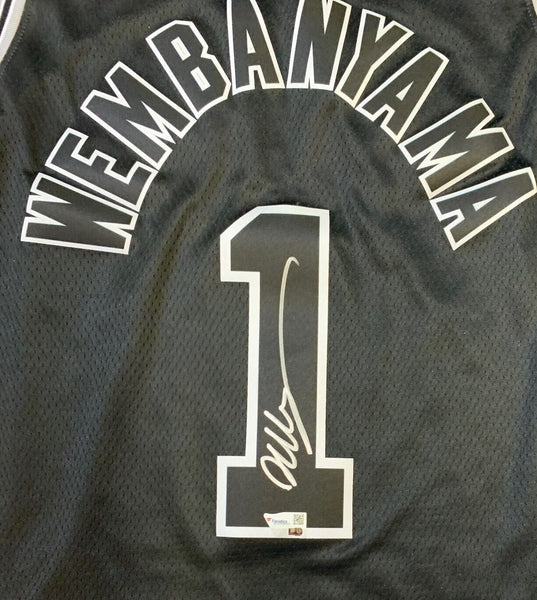 Victor Wembanyama has autographed this official San Antonio swingman jersey size XL twill # which is heat screened on. Autograph was witnessed and authenticated by Fanatics Authentic. Simply scan the QR code hologram on your item to verify authenticity on their site. Victor was the #1 overall pick of the 2023 draft.Stock image.