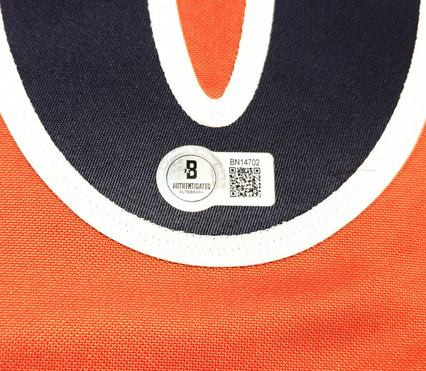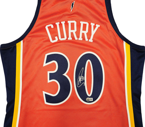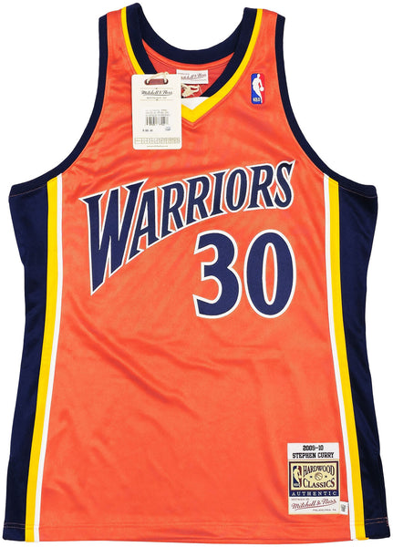 This is an Orange Authentic Mitchell & Ness Golden State Warriors 2009-10 HWC Authentic Rookie Jersey that has been hand signed by Stephen Curry. This jersey is Size 44. This item has been certified authentic by Beckett Authentication (BAS) and comes with their tamper-proof hologram.