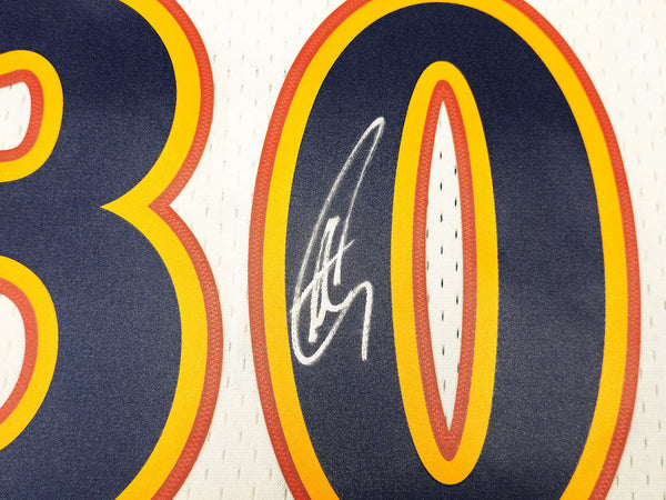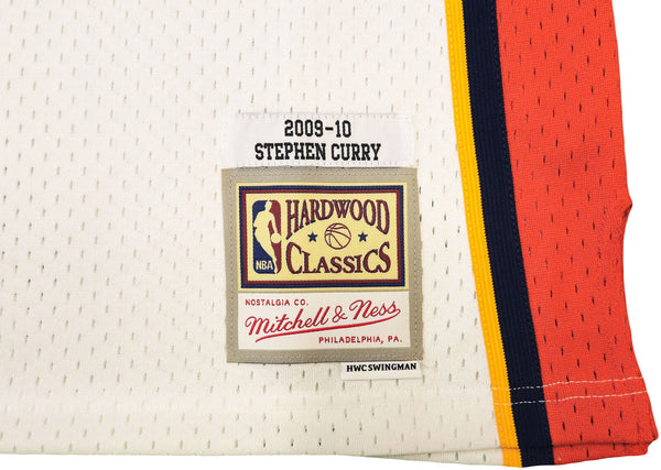 This is a White Authentic Mitchell & Ness Golden State Warriors 2009-10 HWC Swingman Rookie Year Jersey that has been hand signed by Stephen Curry. This jersey is Size L. This item has been certified authentic by JSA and comes with their tamper-proof hologram and matching certificate of authenticity.