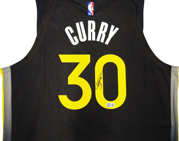 This is a Black Nike Golden State Warriors Authentic City Edition Jersey that has been hand signed by Stephen Curry. This jersey is Size 48 Length +2. This item has been certified authentic by Beckett Authentication (BAS) and comes with their tamper-proof hologram.