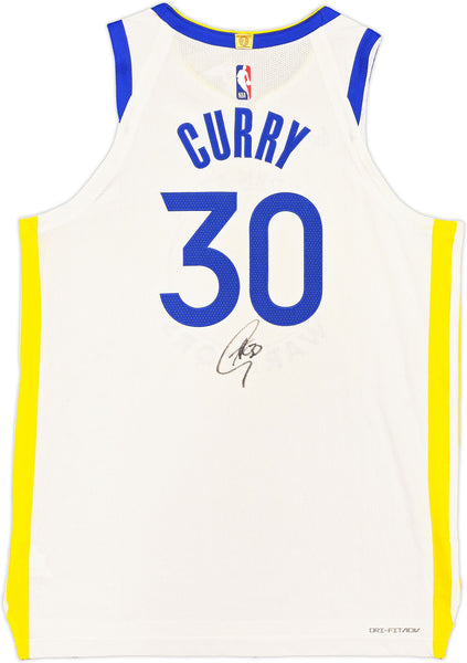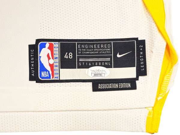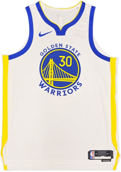 This is a White Nike Golden State Warriors Association Edition Jersey that has been hand signed by Stephen Curry. This jersey is Size 48+2. This item has been certified authentic by JSA and comes with their tamper-proof hologram and matching certificate of authenticity.