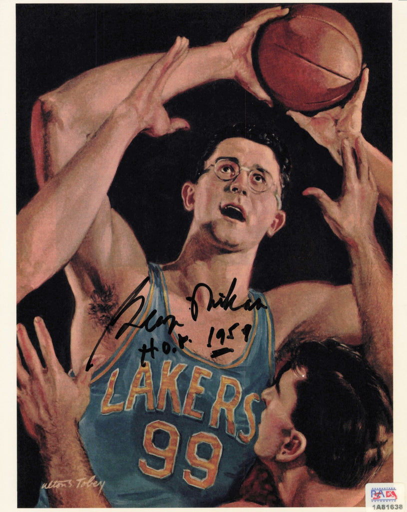 This is an 8x10 Photo that has been hand signed by George Mikan. This item was inscribed "HOF 1959." This item has been certified authentic by PSA/DNA and comes with their tamper-proof hologram BUT is missing the matching certificate of authenticity.