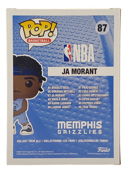 Featured is a Ja Morant signed Memphis Grizzlies Funko Pop #87. This pop has been hand signed by Morant and comes with the Beckett hologram and certificate of authenticity. This pop would make a great addition to any sports memorabilia collection! SPECIFICATIONS Autographed By: Team: Memphis Grizzlies Sport: Basketball-NBA Authentication: Beckett Grading Services