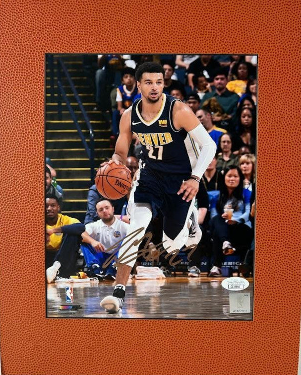 Authentic Jamal Murray Signed Denver Nuggets Photo - Championship Quality Celebrate the 2023 NBA Championship with this premium Jamal Murray autographed 8x10 Denver Nuggets photo, featuring a custom basketball-themed mat and JSA Certificate of Authenticity. Product Highlights: NBA Champion: Jamal Murray, key player in Denver's historic 2023 championship run Premium 8x10 Photo: High-quality action shot in Nuggets uniform Basketball-Themed Mat: Custom matting with basketball design elements JSA Certificate of Authenticity: Guaranteed genuine autograph Ready to Frame: Professional presentation for immediate display About Jamal Murray: The Canadian guard has been instrumental in the Denver Nuggets' success, forming a dynamic duo with Nikola Jokic. Murray's clutch performances in the playoffs, including his legendary bubble run in 2020 and championship heroics in 2023, have made him a fan favorite and rising NBA star. Photo Quality: Crystal clear 8x10 professional printSignature: Gold ink autographMatting: Basketball-themed design, ready for 11x14 frameAuthentication: JSA Certificate of Authenticity included Perfect for Nuggets fans, basketball collectors, or anyone who appreciates championship-level talent. This piece captures Murray's journey from promising young player to NBA champion.