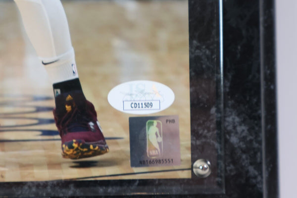 The product is an autographed 8x10 photo of basketball player Jamal Murray from the Denver Nuggets. It comes with a plaque and a James Spence Authentication (JSA) certificate of authenticity.
