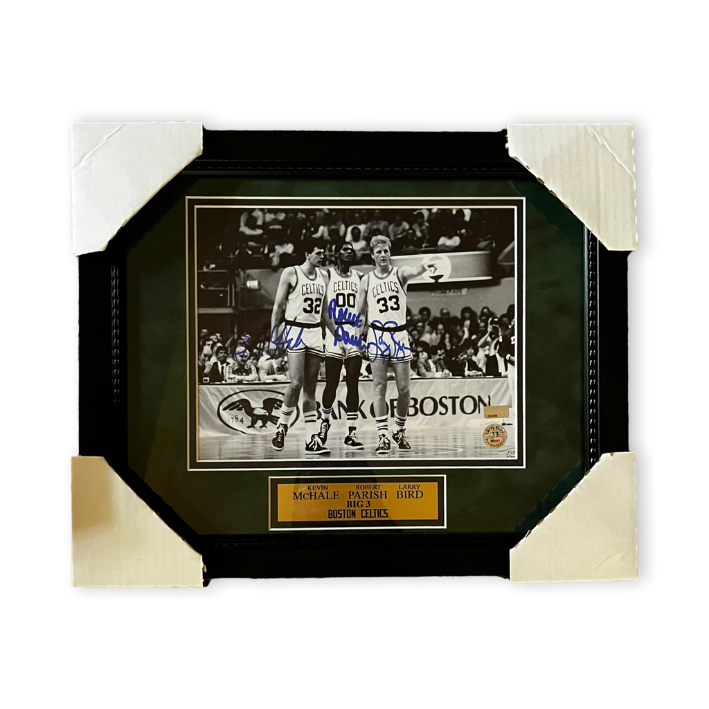 This 8x10 photo custom framed to 11x14 has been personally hand-signed by Larry Bird, Robert Parish & Kevin Mchale of the Boston Celtics100% authenticCertificate of Authenticity by New England Pictureasgmemorabilia.com