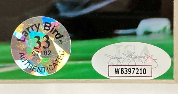 Featured is a Larry Bird signed 16x20 photo. This photo has been hand signed by Bird and comes with the JSA witnessed hologram and certificate of authenticity, along with the Bird exclusive hologram. This photo has been professionally framed and matted and is approximately 22x27. This photo would make a great addition to any sports memorabilia collection! SPECIFICATIONS Autographed By: Larry Bird Team: Boston Celtics Sport: Basketball Authentication: James Spence Authentication (JSA)