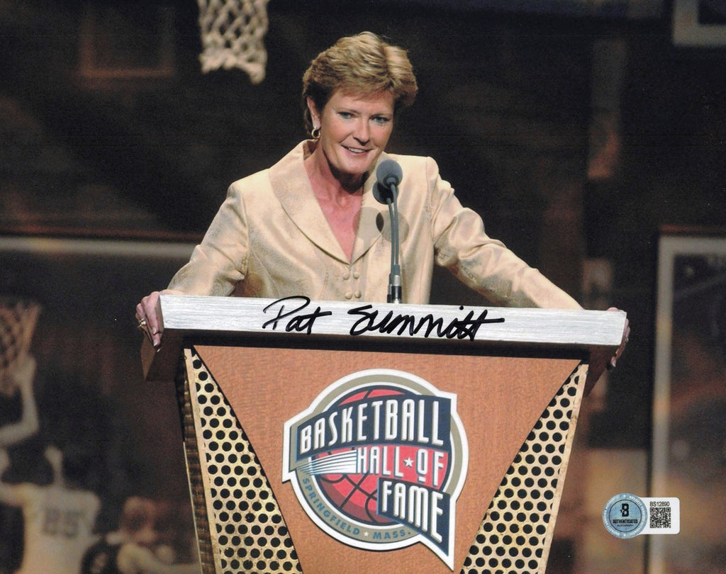 This is an 8x10 Photo that has been hand signed by Pat Summitt. This item has been certified authentic by Beckett Authentication (BAS) and comes with their tamper-proof QR Code hologram.