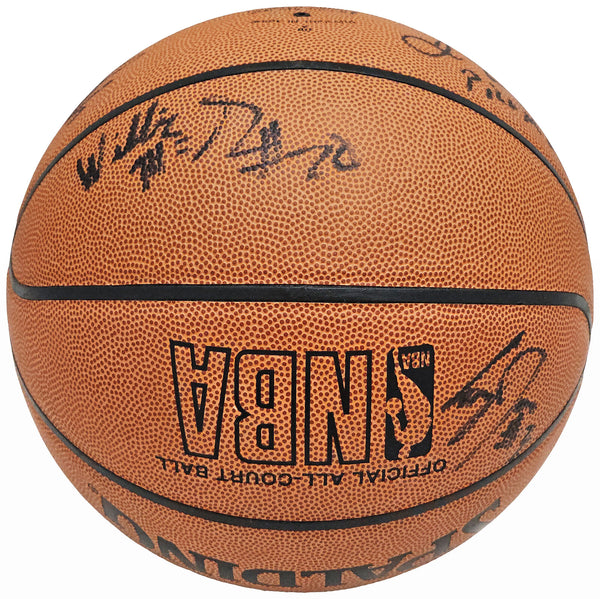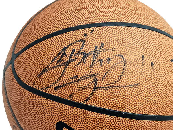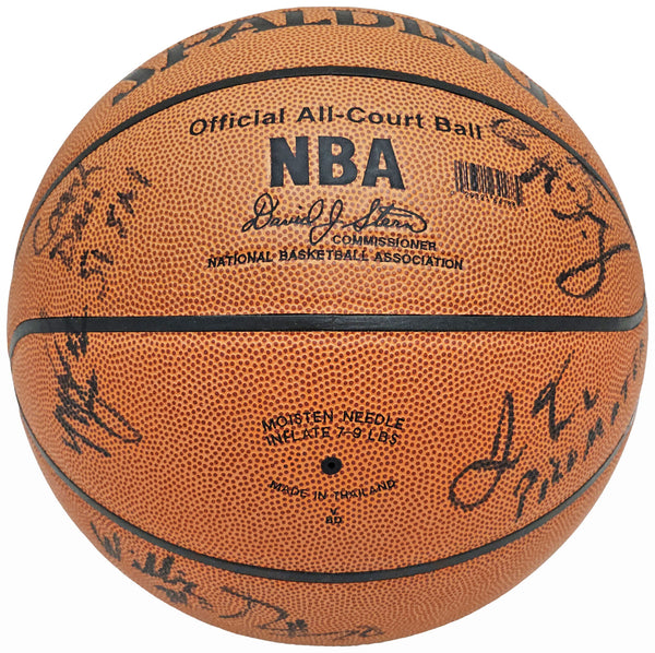 This is an Official Spalding NBA Leather Game basketball that has been hand signed by 8 Players & coaches from the 2002-03 St. Vincent - St. Mary's Fighting Irish State Championship Team. LeBron signed this one LeBron "King" James. This is a vintage high school signature. Signatures include LeBron James, Dru Joyce, Sian Cotton, Corey Jones, Willie McGee, Marcus Johnson & Coach Dru Joyce. It has been certified authentic by PSA/DNA and comes with their sticker and matching full page certificate of authenticity.