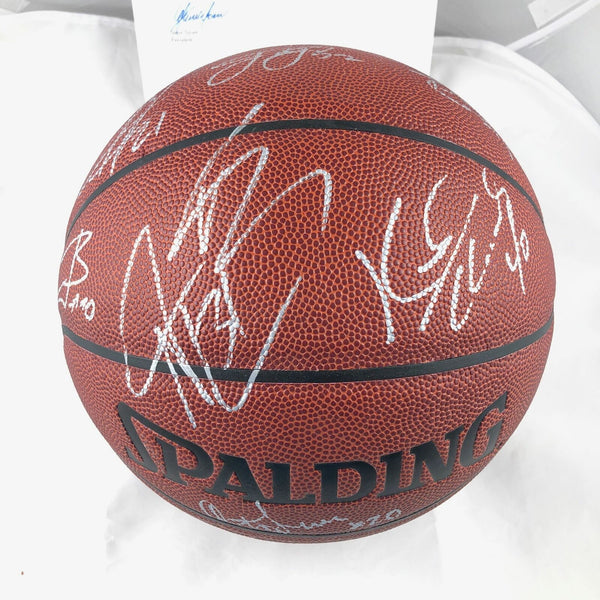 Spalding Basketball signed by the 2005-2006 Phoenix Suns. This ball has 12 signatures from the 2005-2006 Phoenix Suns. The ball is signed by the following players: (All 12 signatures have been authenticated by PSA/DNA) 12 signatures STEVE NASHLEANDRO BARBOSARAJA BELLPAT BURKEBORIS DIAWBRIAN GRANTEDDIE HOUSEJIM JACKSONJAMES JONESSHAWN MARIONKURT THOMASDIJON THOMPSON All 12 autographs on this basketball were authenticated by a team of experts at PSA/DNA and come with a Letter of Authenticity so you can rest assured you are purchasing the real deal. Don't miss your opportunity to own this one-of-a-kind basketball autographed by the 2005-2006 Phoenix Suns.