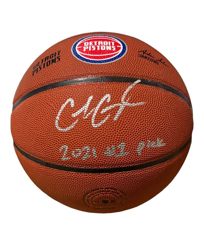 Cade Cunningham Signed Wilson Detroit Pistons Basketball 2021 #1 Pick 41100 The number in the listing title is just an inventory sku for our records and is not the authentication number. This is the exact item that you will receive so please see pictures for condition. This is a basketball that was personally autographed by Cade Cunningham with #1 Pick inscription. This item includes a Fanatics Authentic hologram and a certificate of authenticity from Denver Autographs.