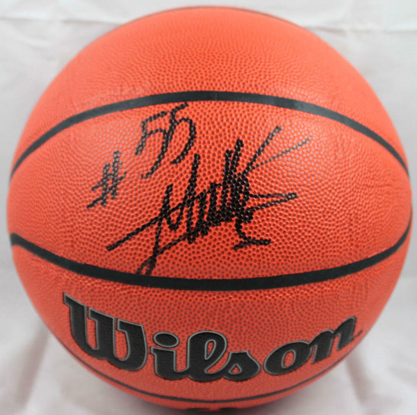 Dikembe Mutombo Autographed Official NBA Wilson Basketball-Beckett W Hologram *Black This is a hand autograph of Dikembe Mutombo on an Official NBA Wilson Game Ball Series Basketball. This item has a Beckett Witness Authentication, which comes with a Beckett numbered sticker hologram and a QR code for verification basic cert. It was signed either at a public autograph appearance or a private signing. This is a stock photo of the item. Although you may not receive this exact item, the item you receive is virtually identical and brand new in great shape.