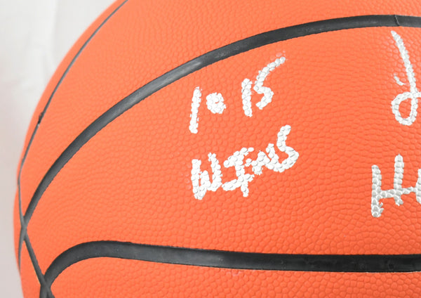 This is a hand autograph of Jim Boeheim on an NCAA Legend Wilson Basketball. Inscribed 1015 Wins, HOF 2005, 2003 Natl Champs. This item has a Beckett Witnessed Authentication, which comes with a Beckett numbered sticker hologram and a QR code for verification. It was signed either at a public autograph appearance or a private signing. This is a stock photo of the item. Although you may not receive this exact item, the item you receive is virtually identical and brand new in great shape. This is a hand autograph of Jim Boeheim on an NCAA Legend Wilson Basketball. Inscribed 1015 Wins, HOF 2005, 2003 Natl Champs. This item has a Beckett Witnessed Authentication, which comes with a Beckett numbered sticker hologram and a QR code for verification. It was signed either at a public autograph appearance or a private signing. This is a stock photo of the item. Although you may not receive this exact item, the item you receive is virtually identical and brand new in great shape.